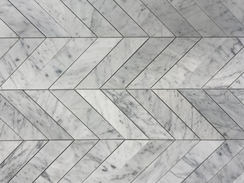 The continuous V-shaped pattern feels crisp and tailored, offering a sleek alternative to classic subway or herringbone designs.