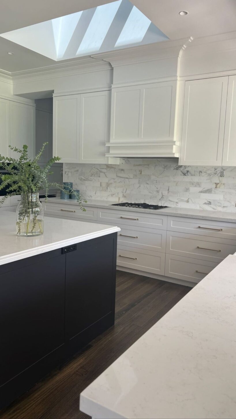 This stone’s neutral tones make it easy to pair with both light and dark cabinetry, brushed metals, and natural finishes. For those seeking a softer, more inviting aesthetic, a Crema Marfil splashback lends gentle luxury to any kitchen.