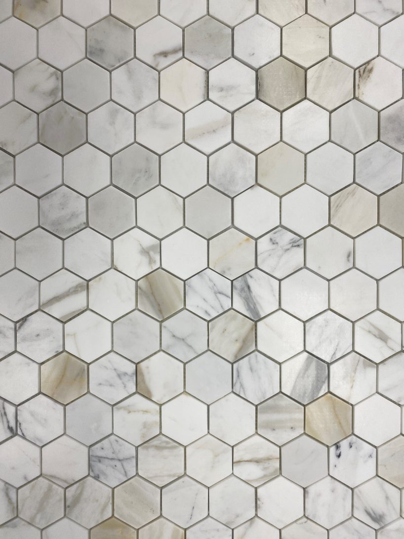 No. Marble mosaics are typically supplied on mesh-backed sheets, usually around 300 × 300 mm, which allows installers to lay them efficiently. As the individual pieces are pre-aligned, mosaics often install faster than loose tiles of the same size.
