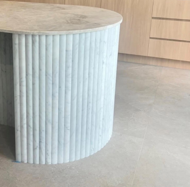 Fluted marble splashbacks offer a richly tactile experience, with soft ridges that catch light and shadow throughout the day. This design adds movement and dimension, giving kitchen walls a sculptural quality.