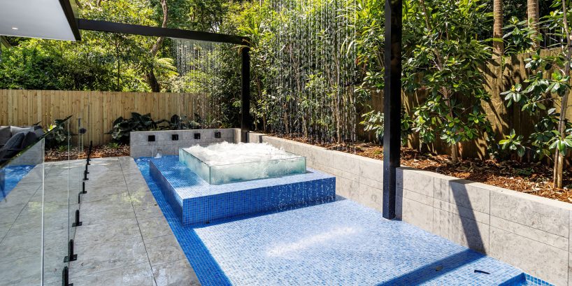 Also known as a drop-down, pool coping refers to specially made tiles designed to sit neatly over the pool’s perimeter for a clean, continuous edge. This defined border helps visually frame the water and provides a polished transition between the pool and its surrounding paving.
