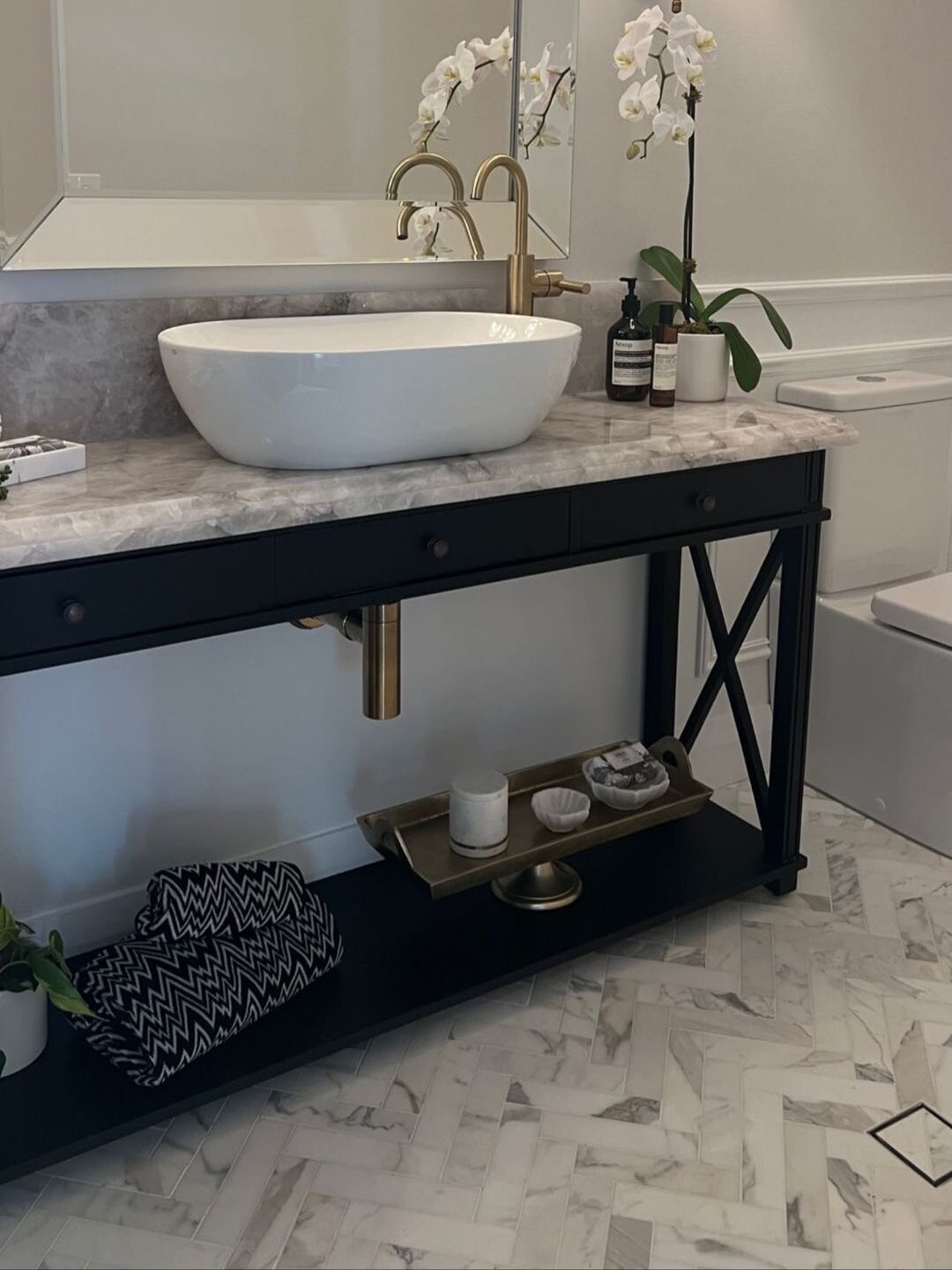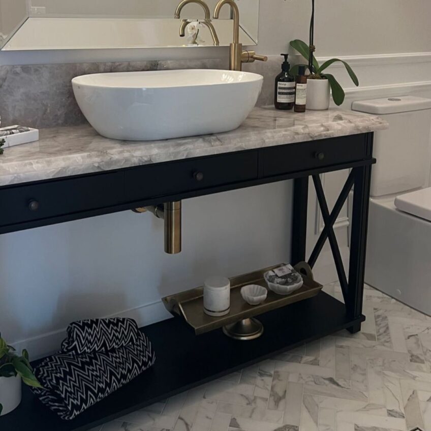 Calacatta Gold marble mosaics are stocked in large herringbone pattern 50 x 200 x 10mm.