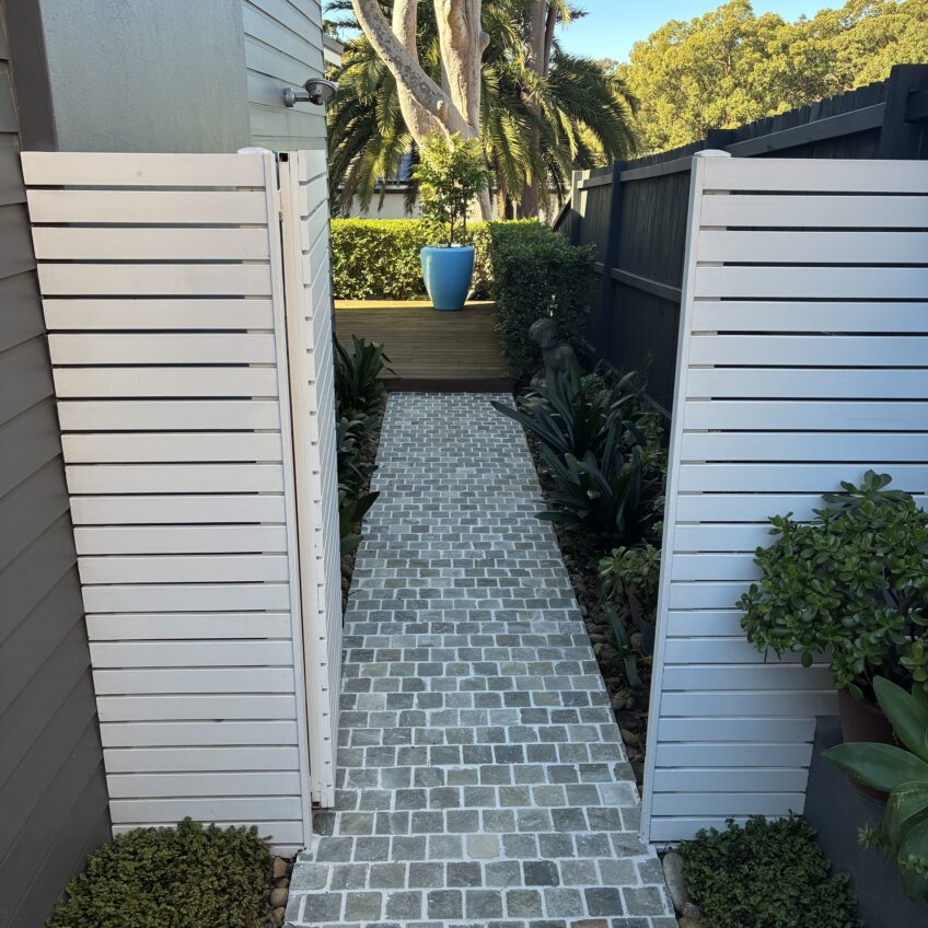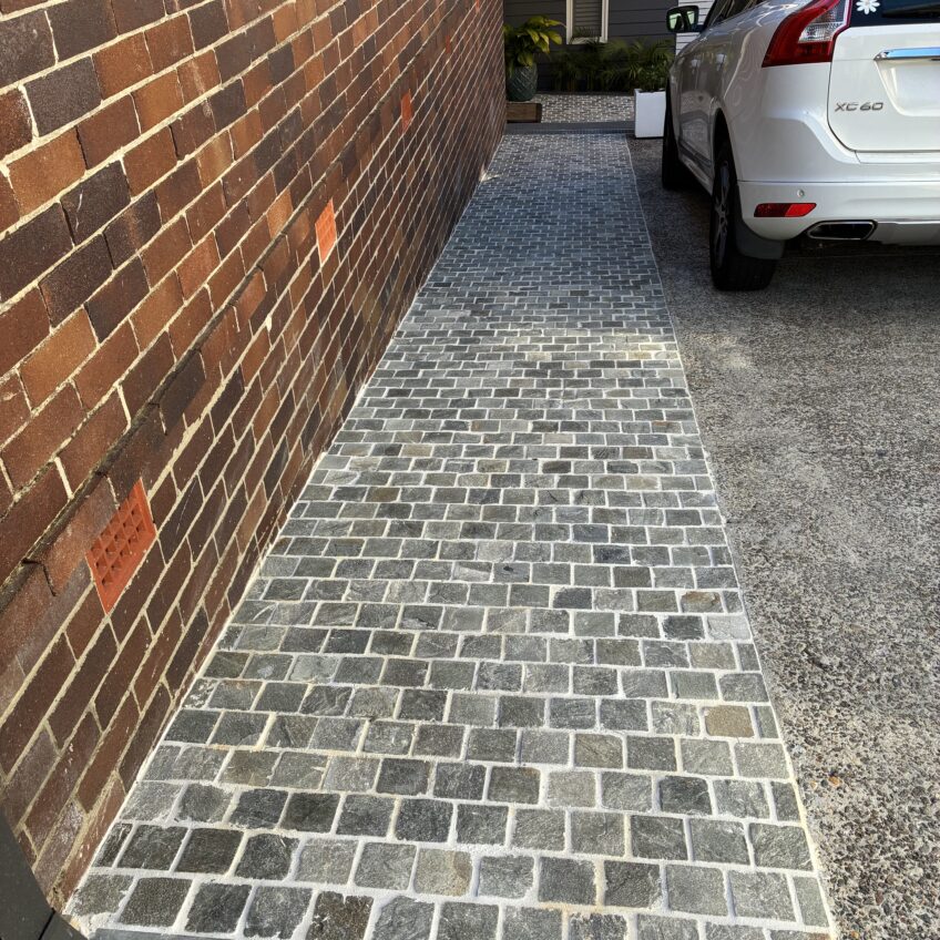 Green Quartz Cobble is a durable stone often used for external areas such as driveways and paths. A Soft-coloured cobblestones evoke a sense of gentle elegance and tranquility, their muted tones seamlessly blending with natural surroundings to create a harmonious and inviting atmosphere. This is stocked in a 90x90x19-22mm format on a 300x300 sheet. Offers a very beautiful natural variation.